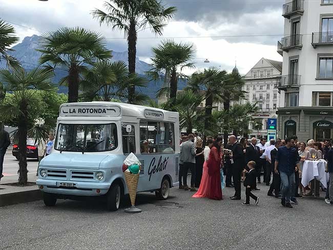 Die liebevoll restaurierten Glacéwagen bieten je nach Fahrzeug von 8 bis zu 20 verschiedene eigenproduzierte Sorten Gelato an. Die Fahrzeuge entsprechen den heutigen Kühl- und Hygienestandards. Mit unserer mobilen Gelateria und mit der Herzlichkeit unseres geschulten Personals verwöhnen wir Sie gerne an Ihrer Geburtstagsparty, Hochzeit, Ihrem Firmenevent oder auch beim Stadtfest, an einer Messe und bei Ausstellungen in der ganzen Schweiz.